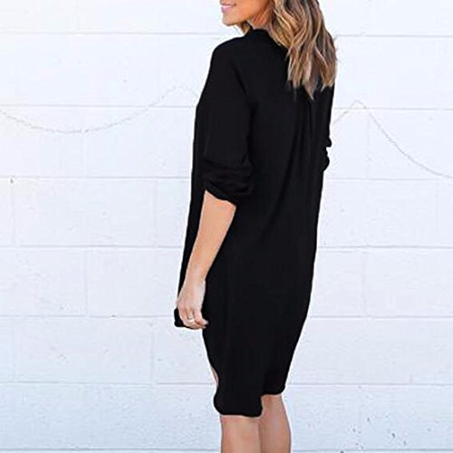 QIYUN.Z Donna V-Collo Roll-up a maniche lunghe Tunica Top camicetta irregolare orlo semplice Camicia di base XL Nero
