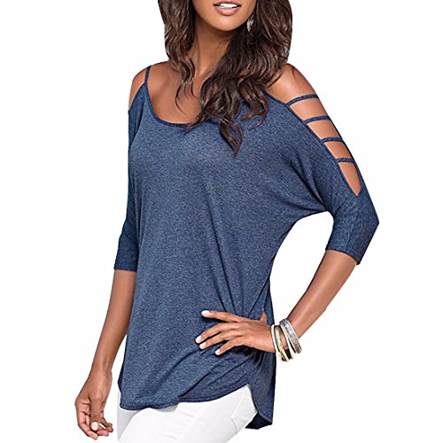 QIYUN.Z Spalla Fredda Camicie Colore Solido Camicetta Da Donna Collo Capestro Manica 3/4