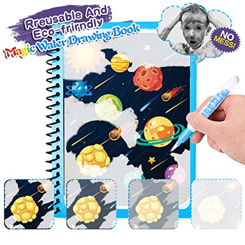 【Riutilizzo, sicurezza e protezione ambientale】 Dopo aver dipinto su magic water book, lascia asciugare l'acqua, il colore su magic water book scomparirà magicamente entro 5-10 minuti, magic water coloring book è sicuro ed ecologico, libro ad acqua per bambini non spreca carta. Ogni libro magico da colorare acqua ha 4 pagine di disegno individuali e libro magico da colorare garantisce che i bambini lo useranno a lungo.