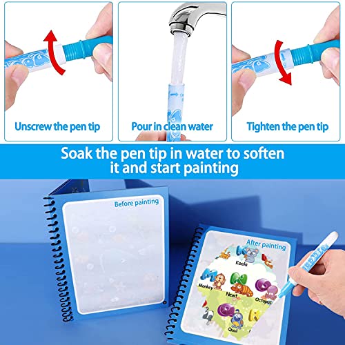 【Facile Da Usare E Mantenere La Notte】 La penna stilografica abbinata libri ad acqua bambini non richiede vernice, magic water book disegna con l'acqua, basta svitare la punta della penna libro magico da colorare, versare acqua pulita e dipingere sull'colori ad acqua per bambini per rivelare il colore. Usando libro magico da colorare per dipingere, i genitori non devono più preoccuparsi del problema dei bambini che versano la vernice per terra e sporcano i vestiti.