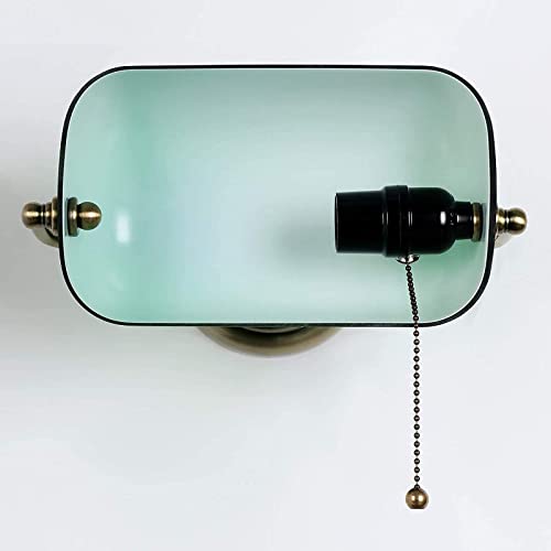QJUZO Applique in Vetro Verde Banchiere, Lampada Da Parete Retrò Con Interruttore A Tirante, Lampada Da Comodino Vintage Tradizionale Lampada A Muro Metallo Orientabile Decorativa E27 Illuminazione