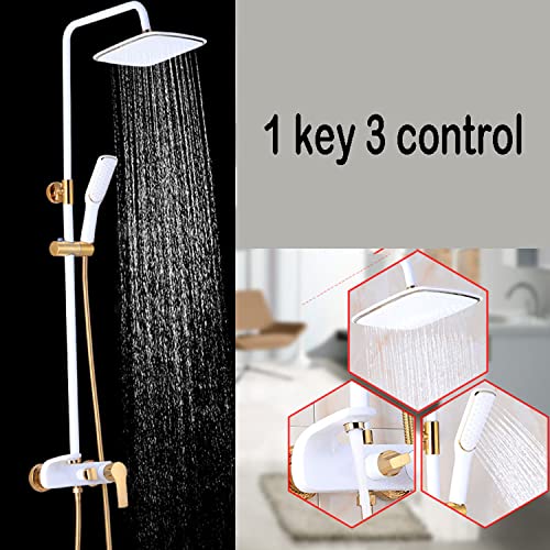 QJUZO Colonna Doccia Bianca 3 Getti Sistema Doccia a Parete con Miscelatore Set Doccia Pioggia Rubinetti Doccia Sistema di Balneazione Elegant Miscelatori Colonna Soffione Vasca Rubinetto