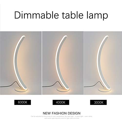 QJUZO Lampada Da Tavolo LED Dimmerabile, Moderna Lampada Da Comodino Camera Da Letto 15W Lampada Ad Arco Bianco Caldo Lampada Da Scrivania Lettura Per Camera Bambini Studio Soggiorno,Bianca