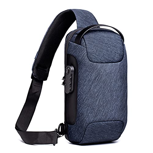 QKFON Borsa a tracolla antifurto da uomo, impermeabile, in tessuto Oxford, impermeabile, per sport, antifurto, con chiusura con password e sistema di ricarica USB per uomo