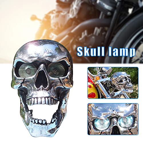 QKFON - Faro a forma di teschio universale, LED per moto, stile retrò, in metallo cromato