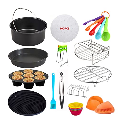QKTYB Accessori Friggitrice ad Aria Set di Accessori Per Friggitrice ad Aria da 14 pezzi da 8 Inch per friggitrici ad aria da 3.7-6.8QT con tortiera/piastra per pizza/griglia in metallo/porta pane