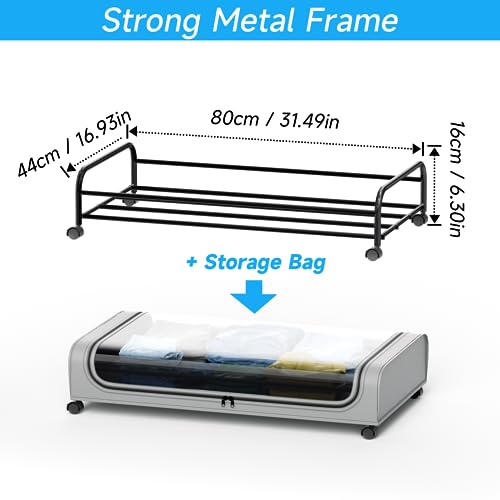 【Materiale Metallico Aggiornato】: l'organizer sotto il letto è realizzato con tubi metallici aggiornati e tessuto non tessuto traspirante per proteggere i vestiti da polvere e umidità. Rispetto ai sacchetti generali sotto il letto, il nostro fondo di stoccaggio sotto il letto adotta tubi metallici, che ha una migliore capacità portante per soddisfare le vostre esigenze di stoccaggio a lungo termine.