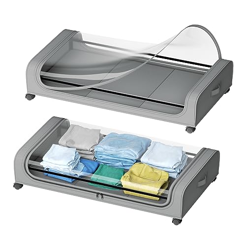 QKTYB Contenitore Sottoletto con Ruote, 2 Pezzi 96L Metallo Contenitori Sottoletto con Coperchio, 6,3 Pollici di Altezza Contenitori Sottoletto Ruote 360°, Organizer Armadio per Vestiti Trapunte