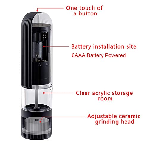 【Macinatura regolabile】: con funzione di macinatura regolabile. Electric Salt and Pepper può soddisfare le tue diverse esigenze. È possibile regolare la rugosità della macinatura ruotando la manopola sul fondo di ogni mulino. Modificando così la dimensione del condimento per ottenere pepe/sale fino o grosso.