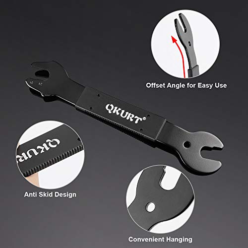 QKURT Chiave Pedali Bici, Chiave per Bicicletta a Doppia Faccia 15, 16, 17 mm Strumento per la rimozione di Riparazione per Ciclismo Mountain Bike MTB BMX
