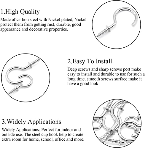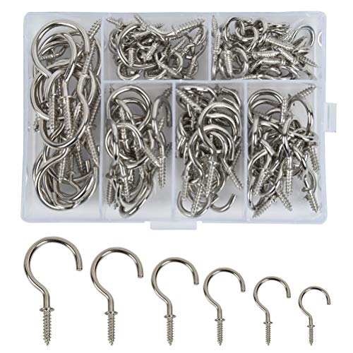 QLOUNI Ganci a Vite 120 Pezzi - 6 Ganci a Vite di Diverse Dimensioni per Occhiali, Vestiti, soffitto, Gioielli e Artigianato (Argento)