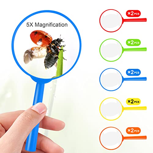 【Colori Multipli】La lente di ingrandimento detective ha 5 colori, rosso, arancione, giallo, blu, verde e ce ne sono due per ogni colore. Vari colori sono appositamente progettati per i bambini, la lente d'ingrandimento a colori è abbastanza chiara per l'uso quotidiano dei bambini.