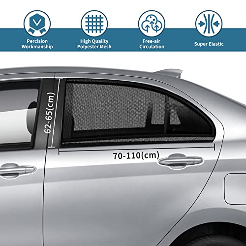 QLOUNI 2 Pezzi Tendine Parasole Auto Bambini, Universali Tende Oscuranti Vetri Auto Finestrini Laterali Protezione Raggi Solari UV, Insetti, Privacy e Antipolvere Tendina Parasole Auto Posteriore