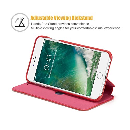 QLTYPRI Case for iPhone 7/iPhone 8, Vintage Slim Magnetic Closure PU Leather Case with Stand Function & Credit Card Slot Holder Shockproof Flip Wallet Cover for iPhone 7/iPhone 8 - Red