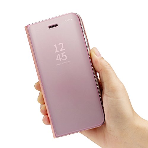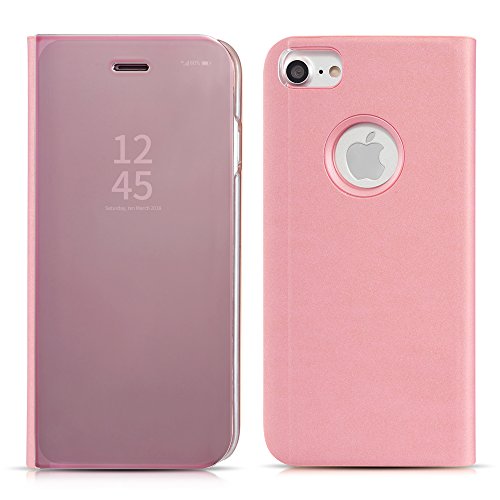 QLTYPRI Case for iPhone 6 6S iPhone 7 iPhone 8, Luxury Fashion Elegant [Perspective] [Mirror] Shell [Stand Function] PC PU Leather Case Shockproof Anti-scratch Ultra Thin Cover Folio Flip Case for iPhone 6/6S/7/8 - Rose Gold