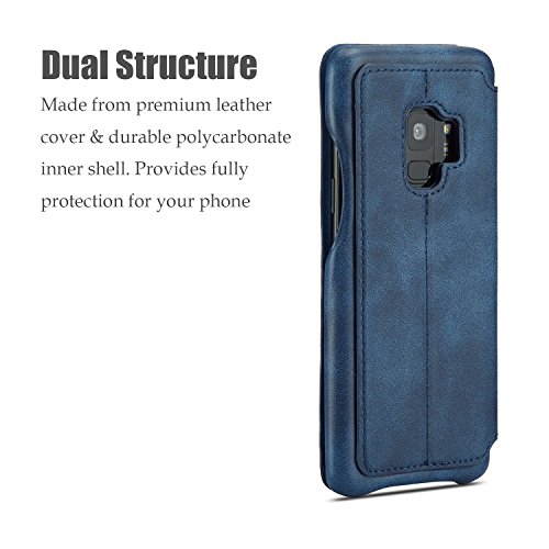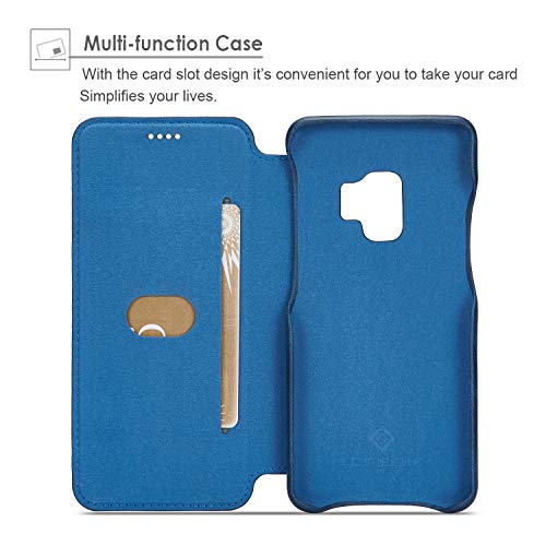 QLTYPRI Case for Samsung Galaxy S9, Vintage Slim Magnetic Closure PU Leather Case with Stand Function & Credit Card Slot Holder Shockproof Flip Wallet Cover for Samsung Galaxy S9 - Blue