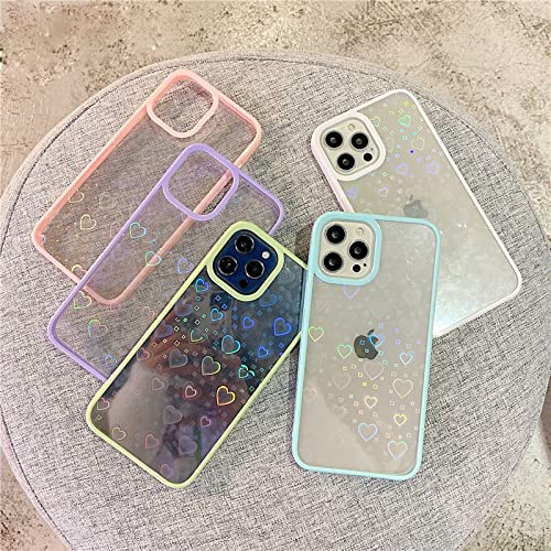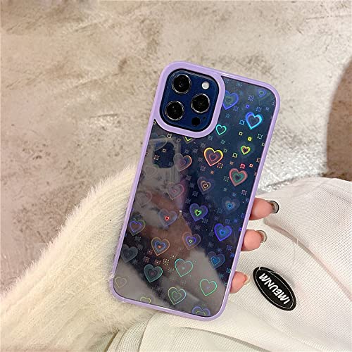 QLTYPRI Compatibile con iPhone 11 Caso Glitter Gradient Laser Love Heart Pattern Clear PC Back per Donne Ragazze Slim Silicone Antiurto Custodia Protettiva per iPhone 11 - Viola