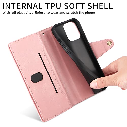QLTYPRI Custodia per iPhone 11 6.1, custodia in pelle PU Premium con 9 scomparti per carte e bottoni automatici in metallo, retro cerniera portafoglio stand custodia protettiva per iPhone 11 6.1,rosa