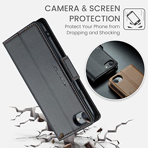 Slot per schede con blocco RFID: la custodia a portafoglio per iPhone 7/8/SE 2020/SE 2022 dispone di 3 scomparti per schede e uno scomparto per contanti per aiutarti a riporre carta d'identità, carte di credito e patente di guida, carte di credito senza trasportare il tuo portafoglio ingombrante. La custodia è progettata con tecnologia di schermatura RFID che può proteggere i segnali per proteggere le tue informazioni personali dal furto.
