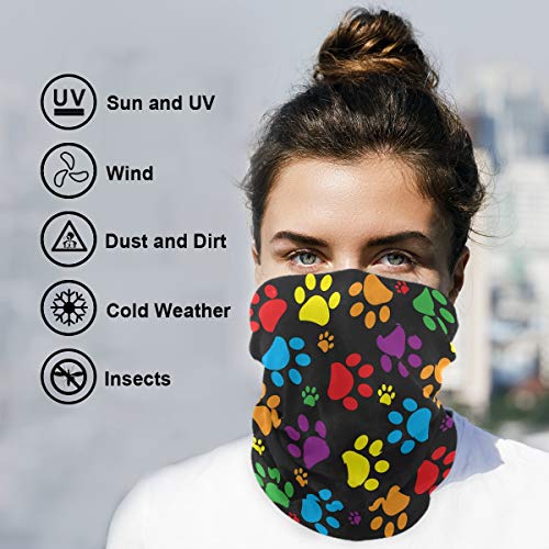 QMIN Fascia colorata con stampa di zampe di cane, bandana, protezione solare, per il collo, sciarpa magica, passamontagna per donne, uomini, ragazzi e ragazze