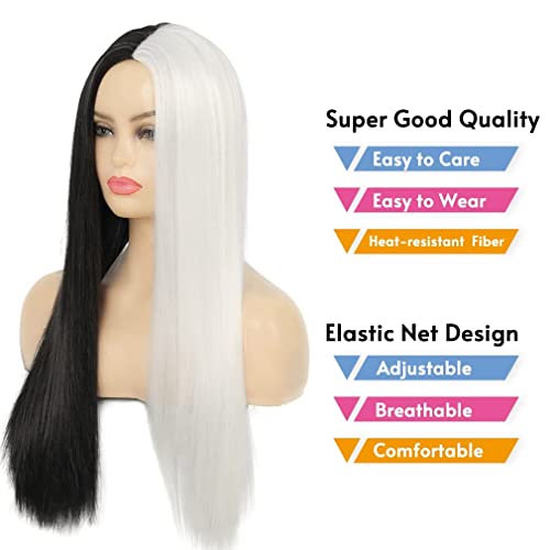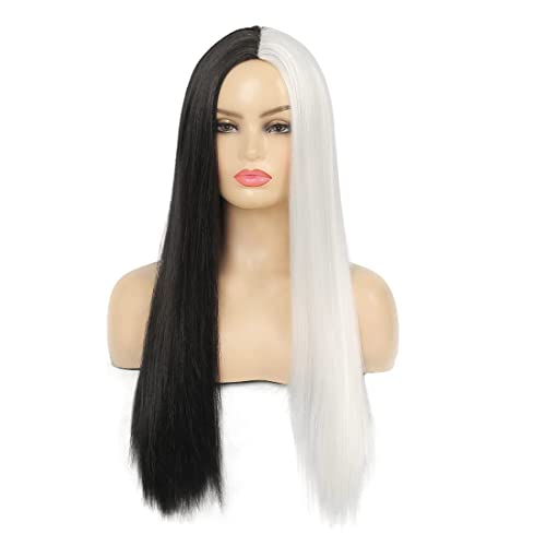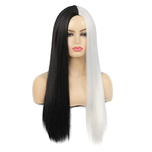Qnbiar Parrucca Mezza Nera Mezza Bianca Parrucche Sintetiche per Cosplay per Feste da Donna Ricci Lunghi Ondulati