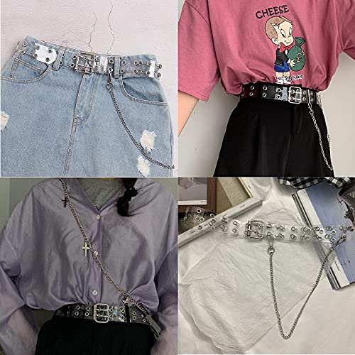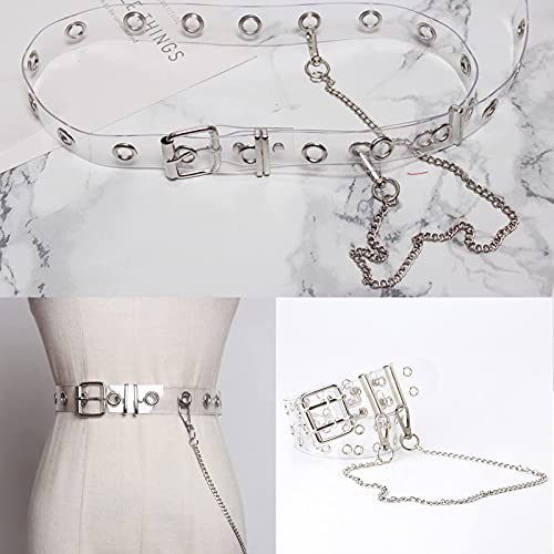 QNFNJNY Cintura Trasparente Cintura Con Rivetto Alla Moda Cintura Con Occhiello Cintura Decorazione Gonna Cintura In Stile Punk Con Una Lunga Catena Per Uomo E Donna Jeans Pantaloni E Vestito 105 Cm