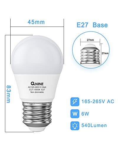 Nessun ritardo di accensione: con il pistone esterno G45 e la base a vite standard E27 è possibile avvitare la lampadina LED QNINE non dimmerabile nella presa. Questa lampada a LED è subito pronta e illumina la vostra casa direttamente all'accensione. Può essere utilizzato anche come lampadario, lampada da tavolo, lampada da lettura, lampada da parete, lampada da terra in cucina, soggiorno, camera da letto, cameretta dei bambini.