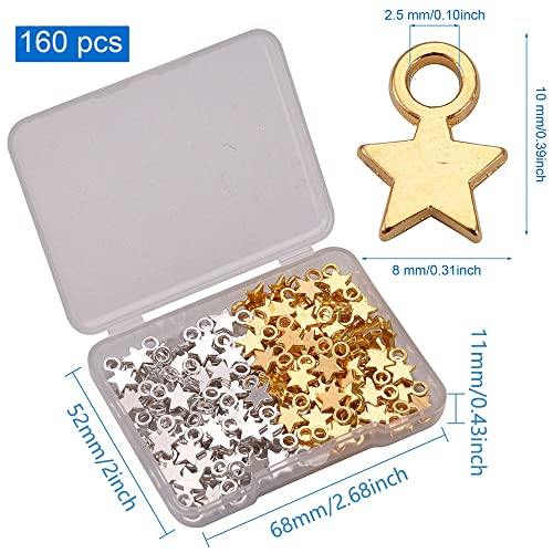 QNMD Perline Gioielli a Stella, 160 Pezzi Stella Perline Natalizie, Charms Star Ciondoli, Stella Collane Faidate, Star Charms Per Bracciali Fai, per Gioielli, Collane, Orecchini(Argento, Oro)