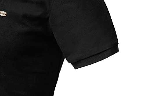 QOCO Basic Polo Uomo Manica Corta 100% Cotone, Traspirante Estate Polo T Shirt Casual Pulsante Ricamo Uomo Polo Shirt Camicia (XL, Nero)