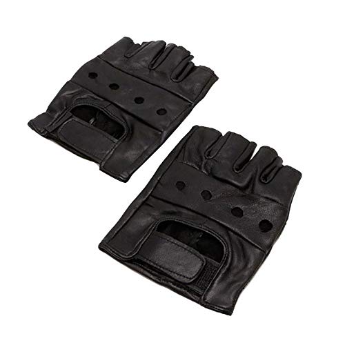 QoFina Guanti in pelle da uomo per la guida, guanti mezze dita alla moda, guanti senza dita da uomo, guanti neri senza dita in pelle pu
