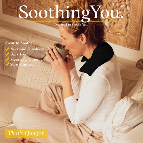 Qomfor Cuscino Cervicale Riscaldante - Cuscino Caldo Cervicale 46 X 12 Cm - Cuscino Termico Microonde Lavanda E Grano Con Morbida Copertura In Cotone Per Alleviare Il Dolore - Riutilizzabile - Nero