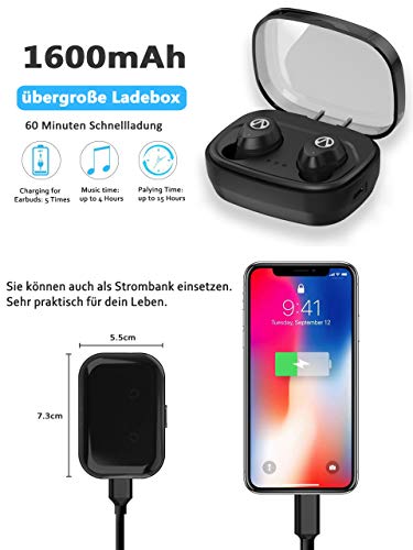 Qooker Cuffie wireless Bluetooth 5.0 In Ear Mini HiFi Stereo Headset fino a 16 ore di gioco Sport Sweatproof Cuffie con microfono integrato e valigetta di ricarica per telefono cellulare, tablet e PC