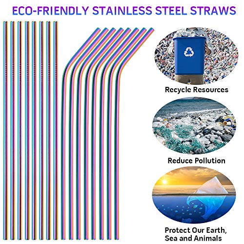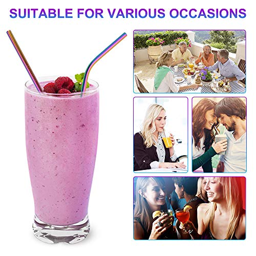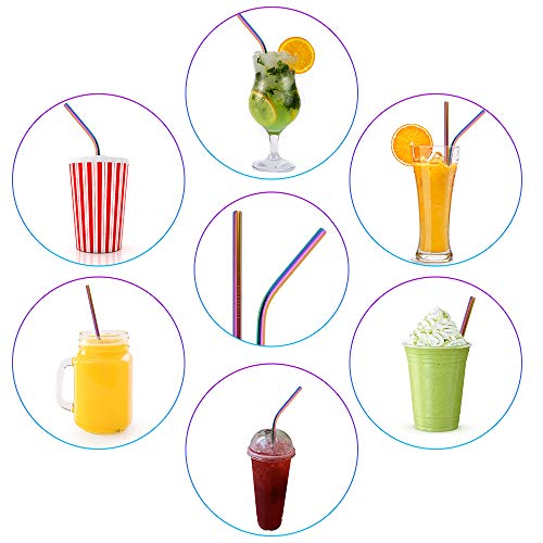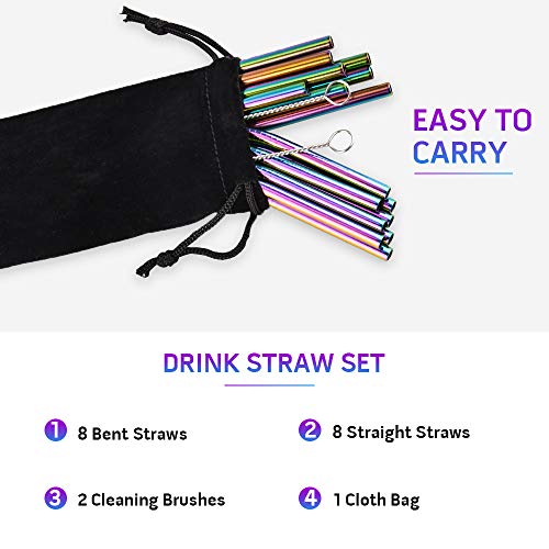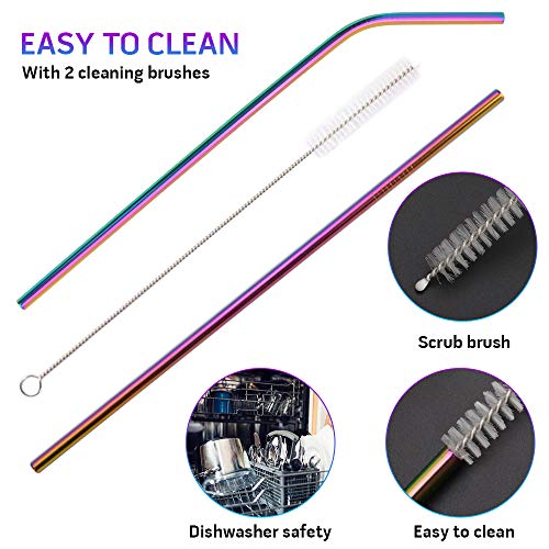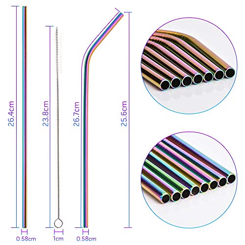 Qoosea Cannucce di Metallo 18 Pezzi Cannucce Riutilizzabili in Acciaio Inossidabile Color Arcobaleno da 10,5" Ultra Lunghe per 20/30 Once (8 dritti | 8 piegati | 2 pennelli)