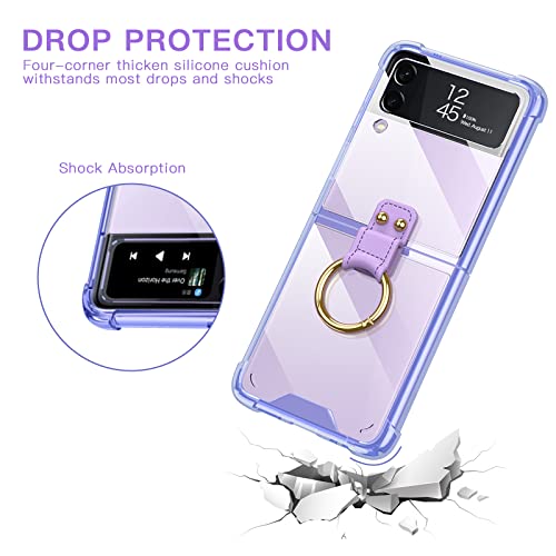 Qoosea Custodia per Samsung Galaxy Z Flip 3, pieghevole Flip 3 Cover con anello, Ultra Sottile Custodie Protettiva per Samsung Z Flip 3 5G (Viola)