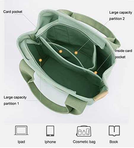 Qosneoun Large Capacity Multi-Pocket Handbag, Canvas Tote Bags Travel Bags Handbags With Zipper And Pockets for Women (Green with straps)