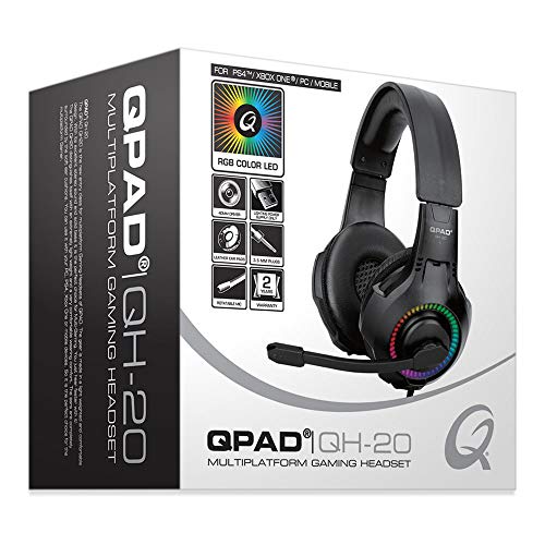QPAD QH-20 Cuffie headset da gioco multipiattaforma, cuffie stereo con illuminazione a LED, nero