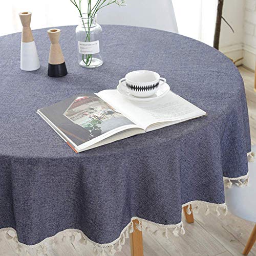 QPllRZZ Semplice Stile Nordico Tovaglia, Rotondo Tovaglia Anti-Polvere Copritavola Cotone Lino Circolare Tavolo Cover per Buffet Tavolo, Feste, Vacanze Cena - Navy, Free Size
