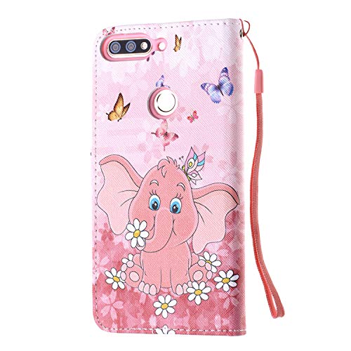 QPOLLY Cover Compatibile con Huawei Honor 7C/Y7 2018 Flip Portafoglio Custodia Libro Folio Pelle PU Morbida Cover con Design Modello Chiusura Magnetica Slot per Schede Funzione Supporto Cover,Elefante