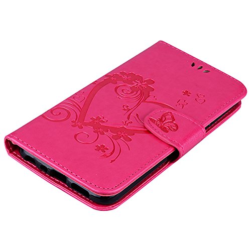 QPOLLY Cover Compatibile con Huawei Honor 9 Lite PU Pelle Flip Portafoglio Supporto Libro Cover Elegante Floreale Amore Farfalla Disegni Slot per Scheda Chiusura Magnetica Antiurto Custodia,Rosa rossa