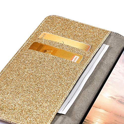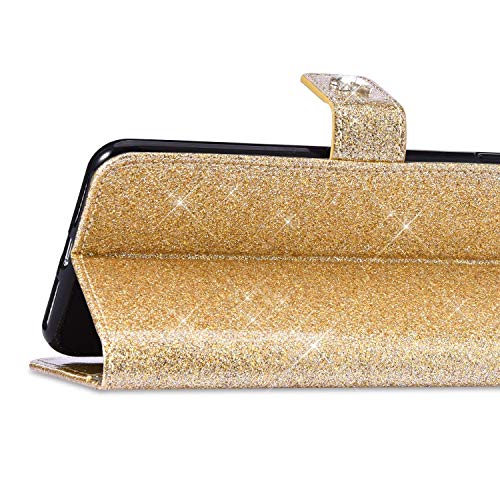 QPOLLY Cover Compatibile con iPhone 7 Plus/8 Plus Cover Brillantini Glitter Pelle PU Flip Libro Portafoglio Magnetica Supporto Custodia con 3D Bling Strass Cristallo Diamante Farfalla Fiori Design,Oro