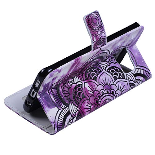 QPOLLY Cover Compatibile con Samsung Galaxy S7 Edge Flip Portafoglio Custodia Libro Folio Pelle PU Morbida Cover con 3D Design Modello Chiusura Magnetica Slot per Schede Funzione Supporto Caso,Mandala