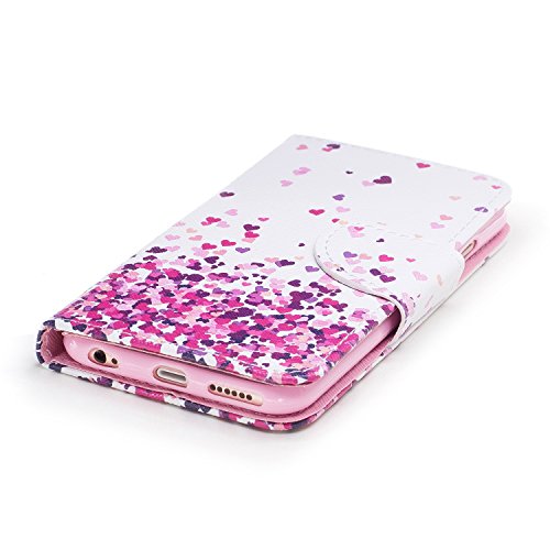 QPOLLY Cover in Pelle Compatibile con iPhone 6 Plus/6S Plus, PU Portafoglio Libro Flip Caso Custodia con Design Funzione Supporto Slot per Schede e Chiusura Magnetica Protettiva Cover,Amore Rosa