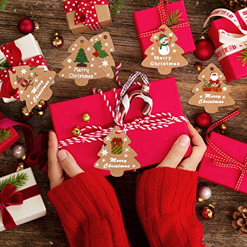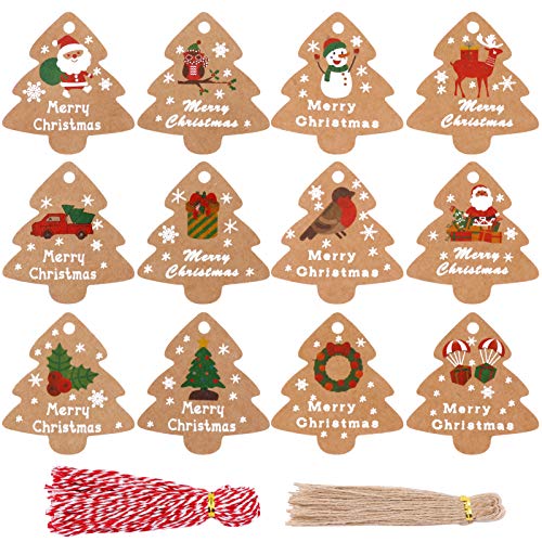 Qpout 120pcs Christmas Kraft Paper Tags,Xmas Tree Hanging Tags Label Parcel For Present