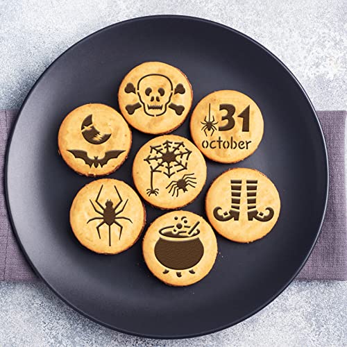 【Decorazione con stencil per torta di Halloween】 20 modelli di caffè a tema Halloween con motivi diversi. Come scheletri, fantasmi, ragni, pipistrelli, gatti, lune, castelli, candele, lapidi, le lettere "trick or treat", ecc. Perfetto per Halloween, prepara caffè, biscotti, cappuccini o torte decorate unici per la tua famiglia e i tuoi amici.