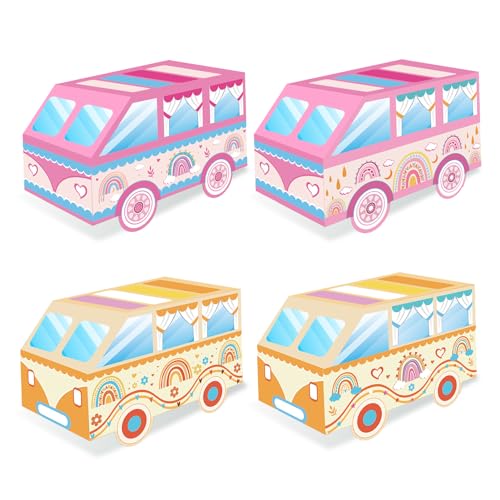 Qpout 12 pz Groovy Party Boxes Hippie Bus Treat Goodie Candy Scatole di Carta Boho Arcobaleno Forniture per Feste Due Groovy Festa di Compleanno Boho Hippie Tema Bus retrò Anni '60 Centrotavola