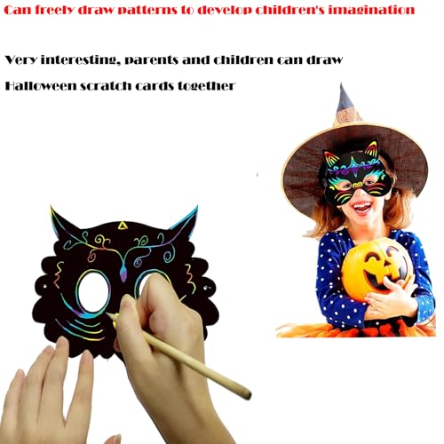 Qpout Maschere antigraffio Halloween per bambini, 24 pezzi Halloween Arcobaleno Carta da graffio, Giochi per feste di Halloween per bambini