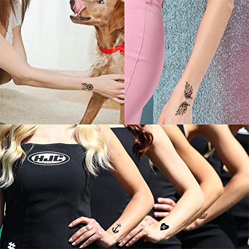 Qpout Tatuaggi temporanei per donne Ragazze Uomini Ragazzi Ragazzi Bambini Bambini (30 fogli), Tatuaggio temporaneo piccolo impermeabile nero Tatuaggi finti Adesivi Collo a mano Piede indietro