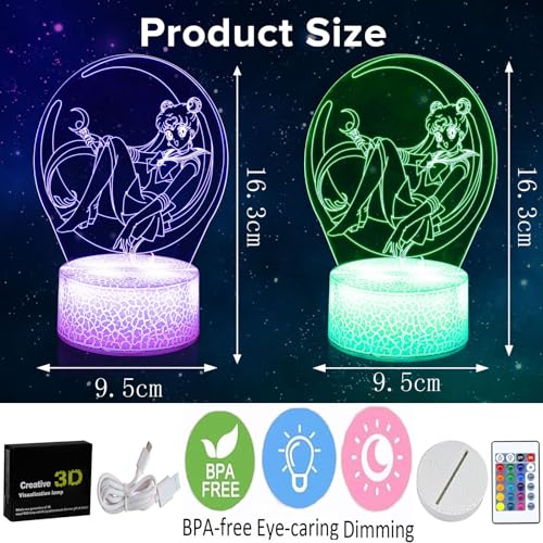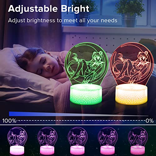 QQAAMZ Personaggio Dei Cartoni Animati Anime Sailor Moon 3d Illusion Led Luce Notturna Telecomando/touch Dual Mode Cute Moon Bella Ragazza Kawaii Girl Gift Bedroom Lampada