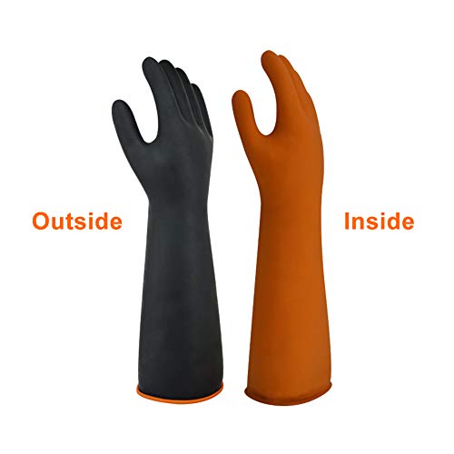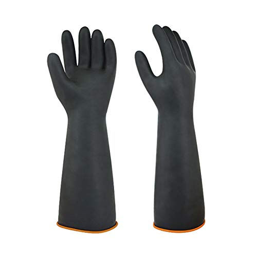 QQDEAL - Coppia di guanti neri in lattice resistente agli agenti chimici, in gomma DPI industriale di sicurezza da lavoro, guanti lunghi resistenti ad acidi, alcalini e olio