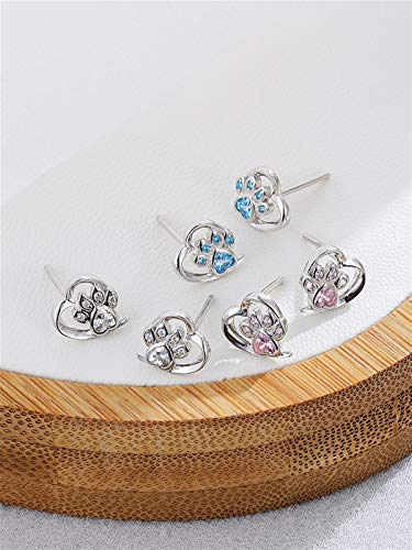 QQINGHAN. Argento 925 Gioielli Animale Zampa Animale Carino Orecchini per Le Donne a Forma di Cuore Blu zirconi Zirconia orecchino (Gem Color: PTEE0473 C)